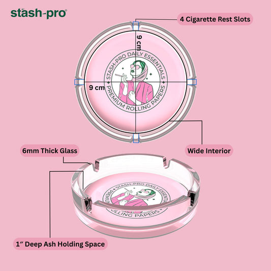 Stash Pro Glass Pink Ashtray | Heat Resistant | Easy To Clean Smoking Ashtray