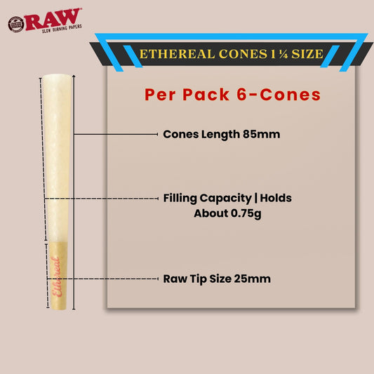 Raw Ethereal Cone | 1 ¼ Size Pre-Rolled Cones | Pack of 6