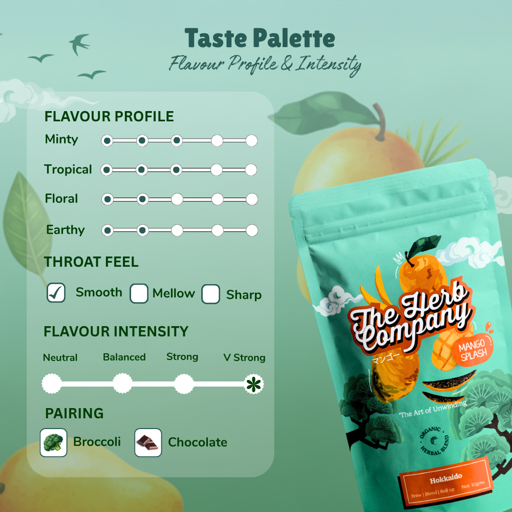 Savor the innovative fusion of fruity sweetness and herbal sophistication in Hokkaido Mango Splash—a refreshing, aromatic delight for every herbal enthusiast.