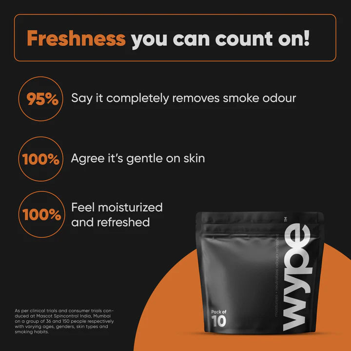 Whether you're a smoker or around second-hand smoke, Wype ensures you feel clean, fresh, and confident. Grab the pack of 10 and stay odor-free wherever you go!